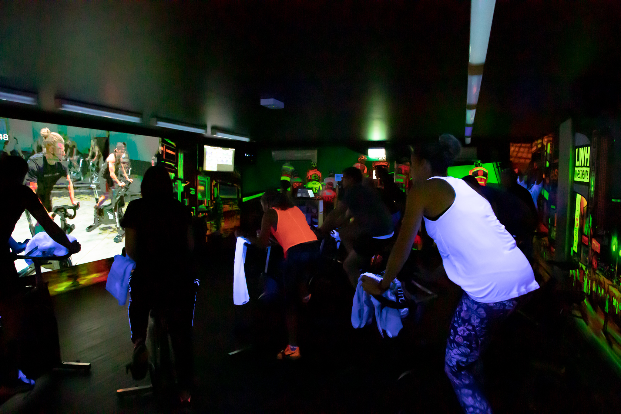 TM: The Group Fitness Management Training Course, talks about “building the stadium” – meaning creating a place where people want to come to workout, and delivering great content to keep them coming back. Part of our “stadium” is the high quality screen we use in our Virtual studios – it’s a sizable investment but it pays off because of the major role it has in creating a premium experience. The screen and the content are really important because it has to be different from your normal group fitness classes – and we really market that cinematic aspect of experience. When you enter the Virtual studio, there are theater curtains on the windows, so it’s dark and immediately feels different to the usual face-to-face group fitness experience. For Virtual to really work, it can’t just be four white walls with a data projector – you need a premium screen, great content, as well as high-quality sound and lighting.