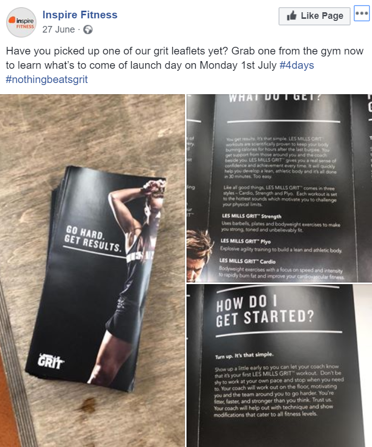Leading up to the event, Inspire Fitness used social media to promote the launch, using a hashtag countdown and #NothingBeatsGRIT as well as sharing LES MILLS GRIT videos and printing leaflets downloaded from Brand Central. Barry states, “We love Brand Central, we use it all the time to download marketing assets to promote our classes, it’s got everything you need.”
