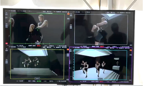 スタジオ1のみで撮影。まずはシャドーだけでステージに上がって動く。その後プレゼンターと参加者を入れて撮影。最終的にこれらをミックスさせて映像を作る。すでに決まっていたシャドーするトラックは一旦なしになり、改めて新たなトラックが割り振られた。