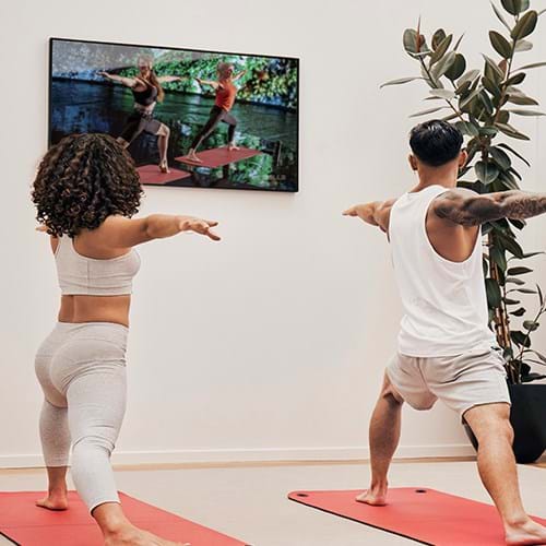 São 14 opções diferentes de programas LES MILLS™ para você escolher, experimentar e adicionar a sua rotina. Temos exercícios de força, yoga, cardio, HIIT, dança, funcional, ciclismo. De alta a baixa intensidade, de 30 a 55 minutos.
