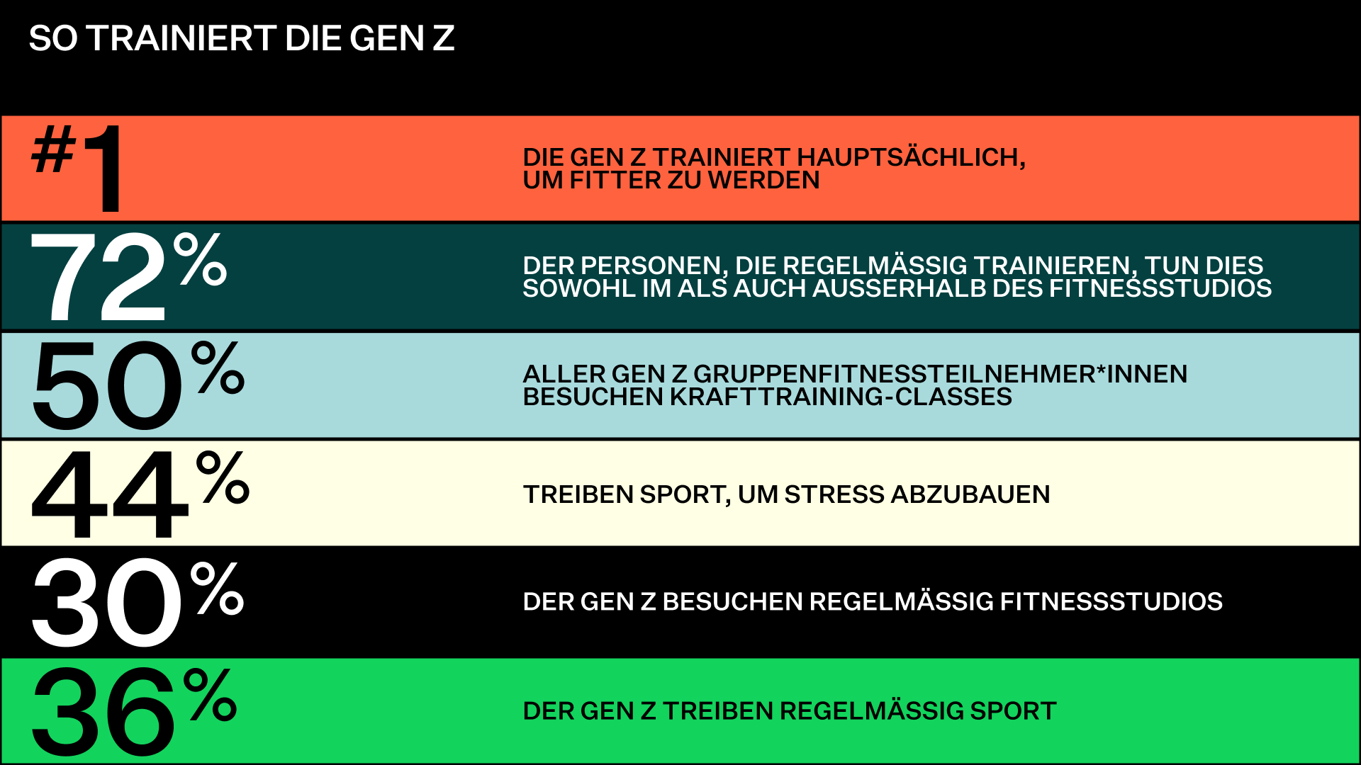 REPORT HERUNTERLADENDie Generation Z ist die wichtigste Generation aller Zeiten, und neue Untersuchungen zeigen, dass die Hälfte von ihnen bereit ist, mit dem Training zu beginnen. Aber wie können Studios diesen unerschlossenen Markt für sich gewinnen? Und welche Barrieren müssen sie überwinden, um der Generation Z den Zugang zum Training so einfach wie möglich zu machen?